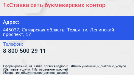 1xСтавка, сеть букмекерских контор по адресу 445037, Самарская область, Тольятти, Ленинский проспект, 17 в дальнейшем Организация, размещена в следующих категориях: