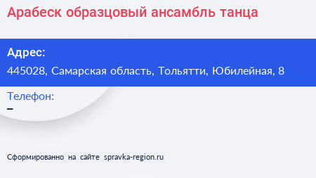 Арабеск, образцовый ансамбль танца по адресу 445028, Самарская область, Тольятти, Юбилейная, 8 в дальнейшем Организация, размещена в следующих категориях: