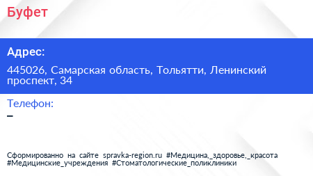 Буфет по адресу 445026, Самарская область, Тольятти, Ленинский проспект, 34 в дальнейшем Организация, размещена в следующих категориях: