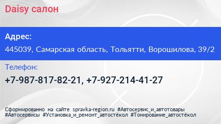 Daisy, салон по адресу 445039, Самарская область, Тольятти, Ворошилова, 39/2 в дальнейшем Организация, размещена в следующих категориях: