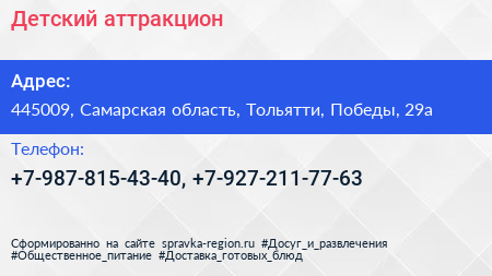 Детский аттракцион по адресу 445009, Самарская область, Тольятти, Победы, 29а в дальнейшем Организация, размещена в следующих категориях:
