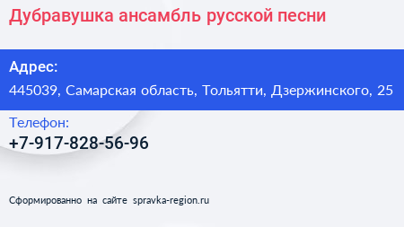 Дубравушка, ансамбль русской песни по адресу 445039, Самарская область, Тольятти, Дзержинского, 25 в дальнейшем Организация, размещена в следующих категориях: