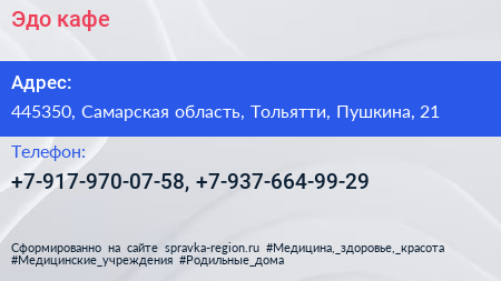 Эдо, кафе по адресу 445350, Самарская область, Тольятти, Пушкина, 21 в дальнейшем Организация, размещена в следующих категориях: