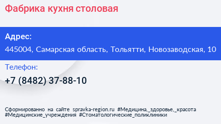 Фабрика-кухня, столовая по адресу 445004, Самарская область, Тольятти, Новозаводская, 10 в дальнейшем Организация, размещена в следующих категориях: