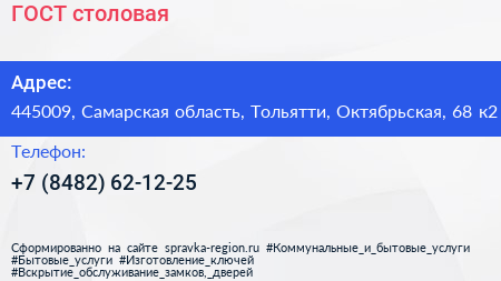 ГОСТ, столовая по адресу 445009, Самарская область, Тольятти, Октябрьская, 68 к2 в дальнейшем Организация, размещена в следующих категориях: