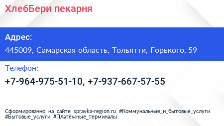 ХлебБери, пекарня по адресу 445009, Самарская область, Тольятти, Горького, 59 в дальнейшем Организация, размещена в следующих категориях: