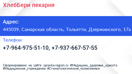 ХлебБери, пекарня по адресу 445039, Самарская область, Тольятти, Дзержинского, 17а в дальнейшем Организация, размещена в следующих категориях: