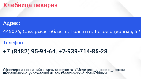 Хлебница, пекарня по адресу 445026, Самарская область, Тольятти, Революционная, 52 в дальнейшем Организация, размещена в следующих категориях: