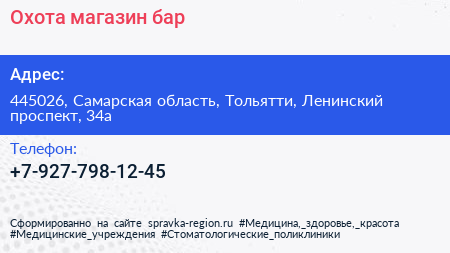 Охота, магазин-бар по адресу 445026, Самарская область, Тольятти, Ленинский проспект, 34а в дальнейшем Организация, размещена в следующих категориях:
