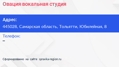 Овация, вокальная студия по адресу 445028, Самарская область, Тольятти, Юбилейная, 8 в дальнейшем Организация, размещена в следующих категориях: