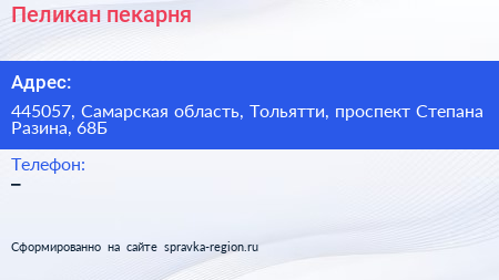 Пеликан, пекарня по адресу 445057, Самарская область, Тольятти, проспект Степана Разина, 68Б в дальнейшем Организация, размещена в следующих категориях:
