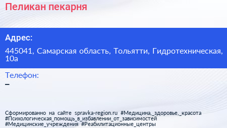Пеликан, пекарня по адресу 445041, Самарская область, Тольятти, Гидротехническая, 10а в дальнейшем Организация, размещена в следующих категориях: