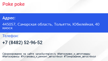 Poke poke по адресу 445057, Самарская область, Тольятти, Юбилейная, 40 киоск в дальнейшем Организация, размещена в следующих категориях: