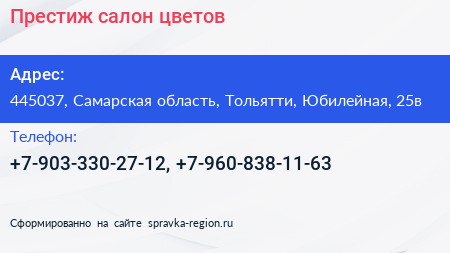 Престиж, салон цветов по адресу 445037, Самарская область, Тольятти, Юбилейная, 25в в дальнейшем Организация, размещена в следующих категориях: