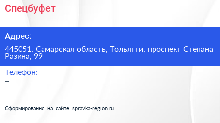 Спецбуфет по адресу 445051, Самарская область, Тольятти, проспект Степана Разина, 99 в дальнейшем Организация, размещена в следующих категориях: