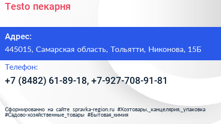Testo, пекарня по адресу 445015, Самарская область, Тольятти, Никонова, 15Б в дальнейшем Организация, размещена в следующих категориях: