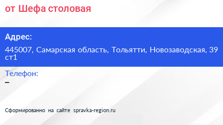 от Шефа, столовая по адресу 445007, Самарская область, Тольятти, Новозаводская, 39 ст1 в дальнейшем Организация, размещена в следующих категориях: