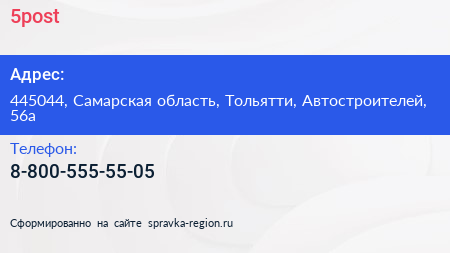 5post по адресу 445044, Самарская область, Тольятти, Автостроителей, 56а в дальнейшем Организация, размещена в следующих категориях: