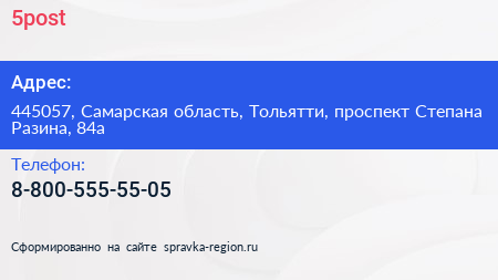 5post по адресу 445057, Самарская область, Тольятти, проспект Степана Разина, 84а в дальнейшем Организация, размещена в следующих категориях: