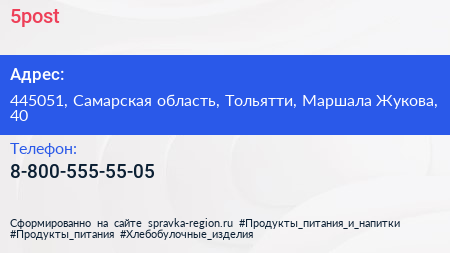 5post по адресу 445051, Самарская область, Тольятти, Маршала Жукова, 40 в дальнейшем Организация, размещена в следующих категориях: