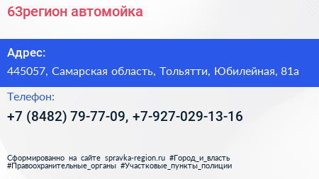 63регион, автомойка по адресу 445057, Самарская область, Тольятти, Юбилейная, 81а в дальнейшем Организация, размещена в следующих категориях: