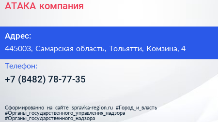 АТАКА, компания по адресу 445003, Самарская область, Тольятти, Комзина, 4 в дальнейшем Организация, размещена в следующих категориях: