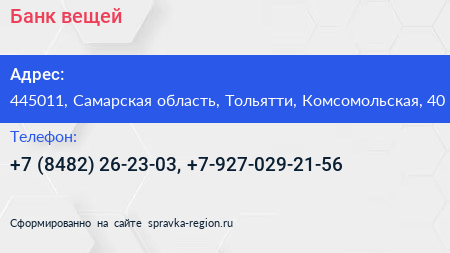 Банк вещей по адресу 445011, Самарская область, Тольятти, Комсомольская, 40 в дальнейшем Организация, размещена в следующих категориях: