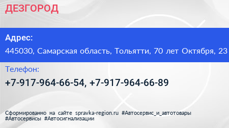 ДЕЗГОРОД по адресу 445030, Самарская область, Тольятти, 70 лет Октября, 23 в дальнейшем Организация, размещена в следующих категориях: