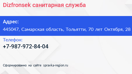 Dizfronsek, санитарная служба по адресу 445047, Самарская область, Тольятти, 70 лет Октября, 28 в дальнейшем Организация, размещена в следующих категориях: