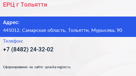 ЕРЦ г. Тольятти по адресу 445012, Самарская область, Тольятти, Мурысева, 90 в дальнейшем Организация, размещена в следующих категориях: