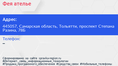 Фея, ателье по адресу 445057, Самарская область, Тольятти, проспект Степана Разина, 78Б в дальнейшем Организация, размещена в следующих категориях: