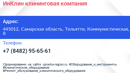 ИнКлин, клининговая компания по адресу 445012, Самарская область, Тольятти, Коммунистическая, 8 в дальнейшем Организация, размещена в следующих категориях: