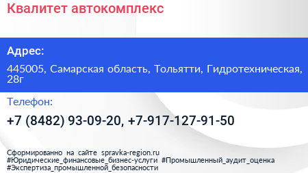 Квалитет, автокомплекс по адресу 445005, Самарская область, Тольятти, Гидротехническая, 28г в дальнейшем Организация, размещена в следующих категориях: