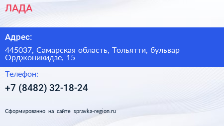 ЛАДА по адресу 445037, Самарская область, Тольятти, бульвар Орджоникидзе, 15 в дальнейшем Организация, размещена в следующих категориях: