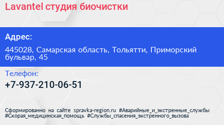 Lavantel, студия биочистки по адресу 445028, Самарская область, Тольятти, Приморский бульвар, 45 в дальнейшем Организация, размещена в следующих категориях: