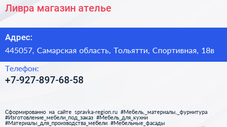 Ливра, магазин-ателье по адресу 445057, Самарская область, Тольятти, Спортивная, 18в в дальнейшем Организация, размещена в следующих категориях: