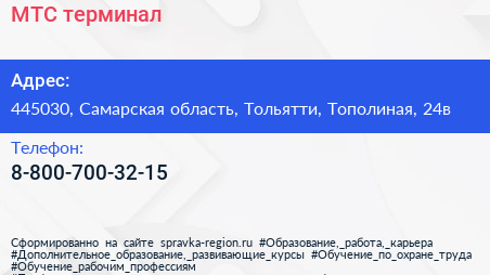 МТС, терминал по адресу 445030, Самарская область, Тольятти, Тополиная, 24в в дальнейшем Организация, размещена в следующих категориях: