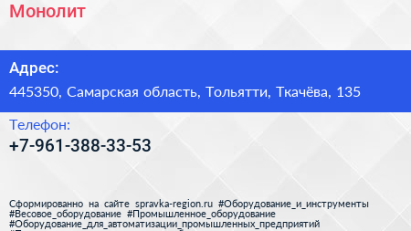Монолит по адресу 445350, Самарская область, Тольятти, Ткачёва, 135 в дальнейшем Организация, размещена в следующих категориях: