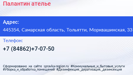 Палантин, ателье по адресу 445354, Самарская область, Тольятти, Морквашинская, 33 в дальнейшем Организация, размещена в следующих категориях: