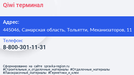 Qiwi, терминал по адресу 445046, Самарская область, Тольятти, Механизаторов, 11 в дальнейшем Организация, размещена в следующих категориях: