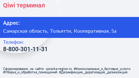 Qiwi, терминал по адресу Самарская область, Тольятти, Кооперативная, 5а в дальнейшем Организация, размещена в следующих категориях: