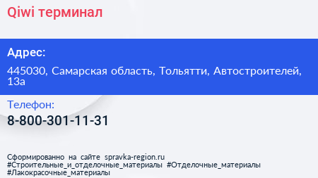 Qiwi, терминал по адресу 445030, Самарская область, Тольятти, Автостроителей, 13а в дальнейшем Организация, размещена в следующих категориях: