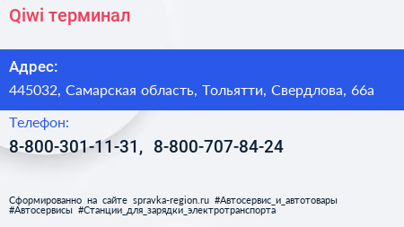 Qiwi, терминал по адресу 445032, Самарская область, Тольятти, Свердлова, 66а в дальнейшем Организация, размещена в следующих категориях:
