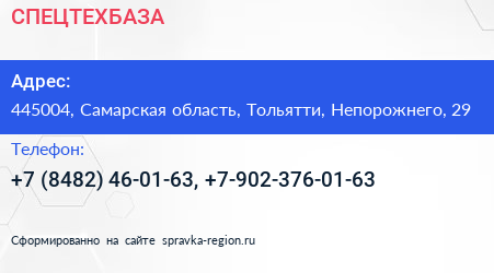 СПЕЦТЕХБАЗА по адресу 445004, Самарская область, Тольятти, Непорожнего, 29 в дальнейшем Организация, размещена в следующих категориях: