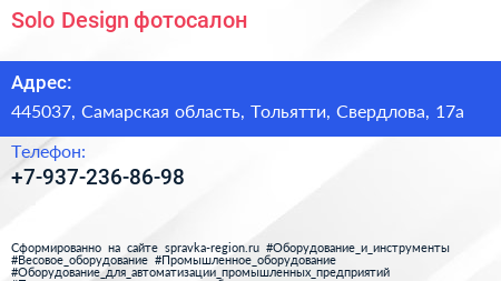 Solo Design, фотосалон по адресу 445037, Самарская область, Тольятти, Свердлова, 17а в дальнейшем Организация, размещена в следующих категориях: