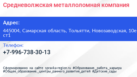 Средневолжская металлоломная компания по адресу 445004, Самарская область, Тольятти, Новозаводская, 10е ст1 в дальнейшем Организация, размещена в следующих категориях: