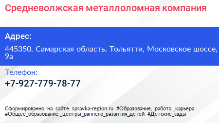 Средневолжская металлоломная компания по адресу 445350, Самарская область, Тольятти, Московское шоссе, 9а в дальнейшем Организация, размещена в следующих категориях:
