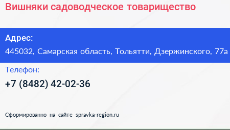 Вишняки, садоводческое товарищество по адресу 445032, Самарская область, Тольятти, Дзержинского, 77а в дальнейшем Организация, размещена в следующих категориях: