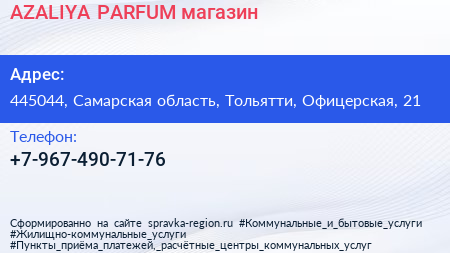 AZALIYA-PARFUM, магазин по адресу 445044, Самарская область, Тольятти, Офицерская, 21 в дальнейшем Организация, размещена в следующих категориях: