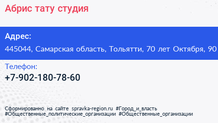 Абрис, тату-студия по адресу 445044, Самарская область, Тольятти, 70 лет Октября, 90 в дальнейшем Организация, размещена в следующих категориях: